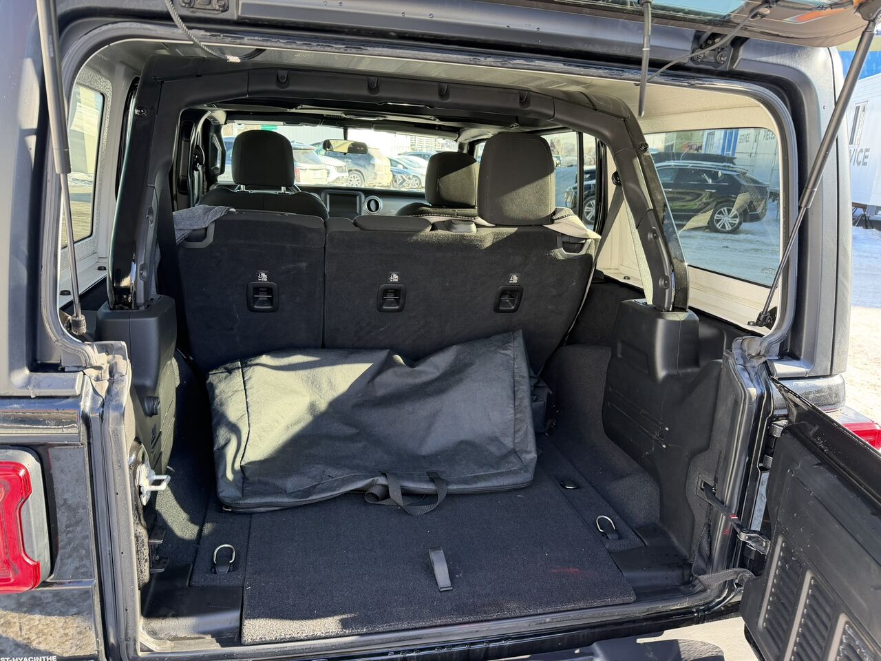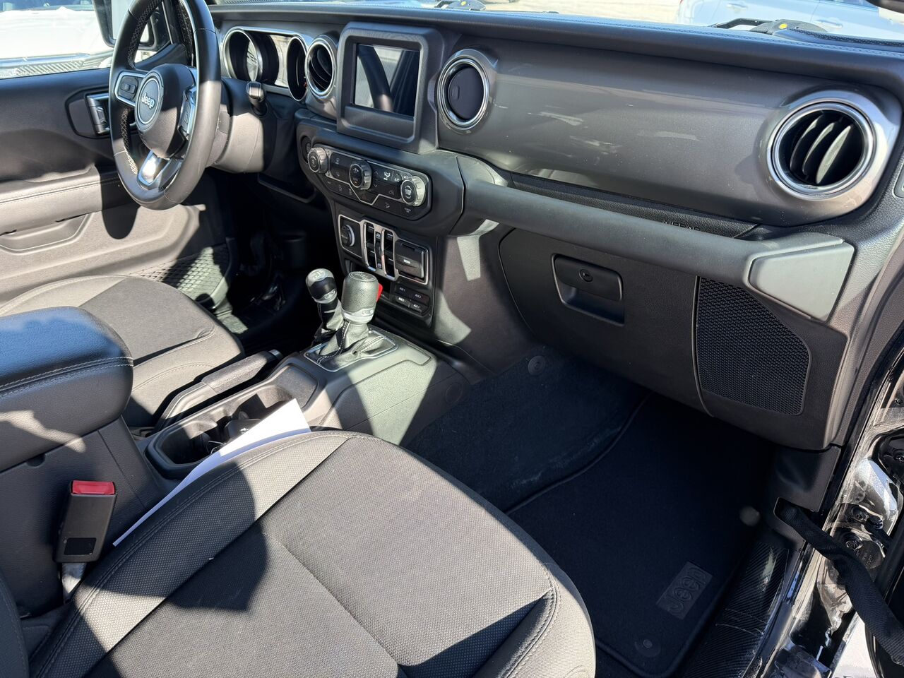 This Wrangler stands out for its comfort and safety options, such as dual-zone automatic air conditioning, the ParkView rear backup camera, and cloth bucket seats. For outdoor enthusiasts, the black Jeep Freedom Top hardtop offers unmatched flexibility. Additionally, fog lights and halogen reflector-type headlights ensure optimal visibility in all conditions.