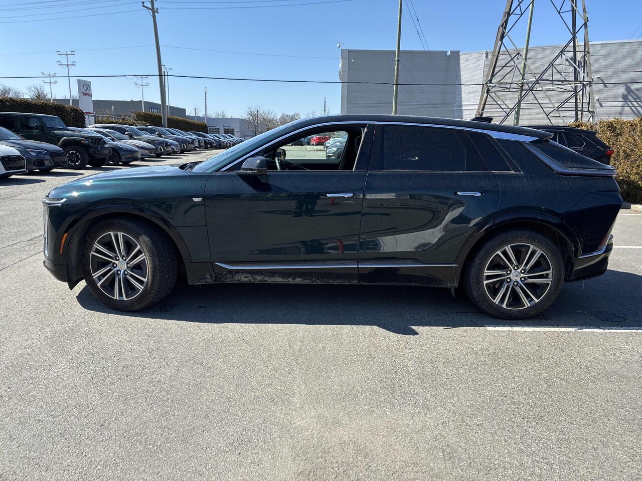 Discover the 2024 Cadillac LYRIQ Luxury 4-door with 1SD, a pre-owned electric vehicle that combines elegance and cutting-edge technology. This SUV offers impressive electric propulsion with an estimated power of 340 hp and torque of 325 lb-ft. Enjoy the 19-speaker AKG Studio audio system for an exceptional sound experience, integrating speakers in the front headrests. The vehicle is also equipped with slim LED headlights with choreography and an illuminated grille with laser-etched graphics, adding a touch of sophistication to its green exterior design.