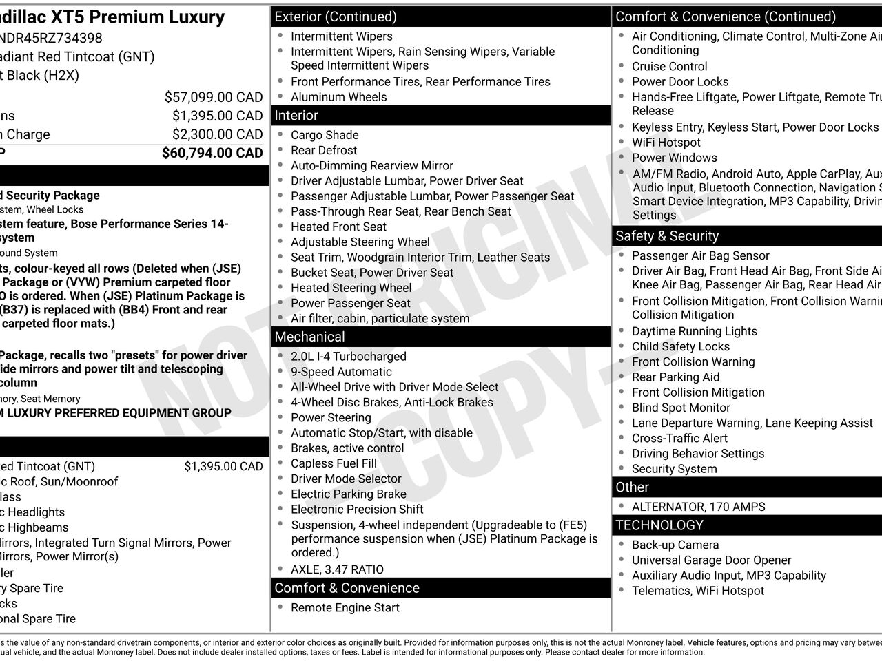 La sécurité est au cœur de ce véhicule avec des fonctionnalités avancées telles que l'alerte de changement de voie, le système de surveillance des angles morts et l'aide au stationnement avant et arrière. Pour les amateurs de technologie, le XT5 est équipé d'Apple CarPlay et Android Auto sans fil, ainsi que d'un système audio Bose Performance Series à 14 haut-parleurs, garantissant une expérience sonore inégalée.
