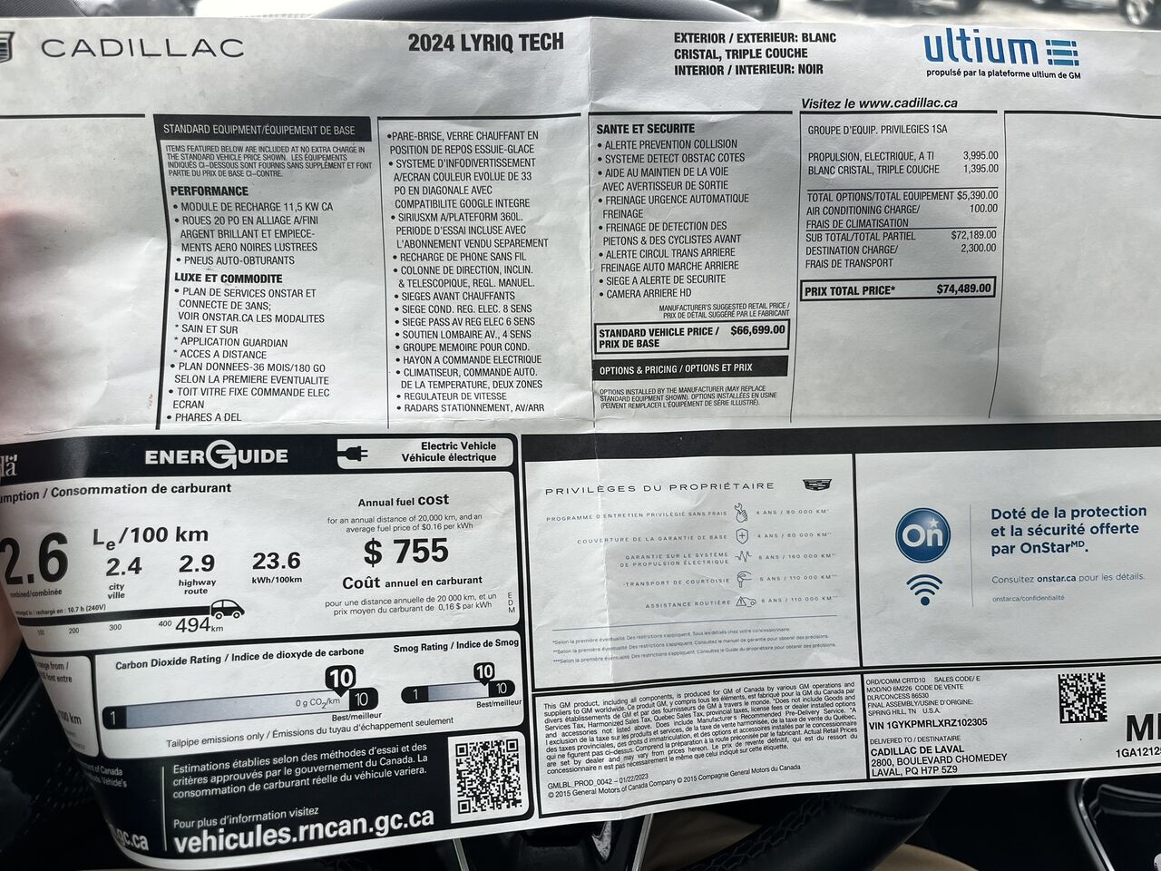 abonnement de 3 ans à onstar et aux services connectés, comprend accès aux services sain et sûr d'onstar et aux services connectés. les clients de détail admissibles bénéficient de l'application onstar guardian et du service accès à distance par l'entremise de l'application mobile mycadillac, ainsi que d'un forfait de données de 180 go/3 ans (selon la première éventualité) à utiliser avec le point d'accès sans fil du véhicule et certaines applications du véhicule. (la période de 3 ans débute à la date de livraison du véhicule. les services onstar et les services connectés requièrent un système électrique fonctionnel (y compris la batterie), un forfait de service actif, la réception de données cellulaires et un signal satellite gps. le système onstar donne accès aux services d'urgence. les services, la connectivité et les capacités varient selon le modèle ou la configuration du véhicule, les conditions ainsi que les restrictions géographiques et techniques, et sont assujettis à certaines conditions et restrictions. consultez le site onstar.ca pour connaître les régions desservies, les modalités, les limitations et les détails liés au système. les forfaits de données sont offerts par at&t ou son fournisseur local; la disponibilité est sujette à modification; le plan de services ne peut être transféré aux propriétaires suivants. non remboursable et sans valeur monétaire.)